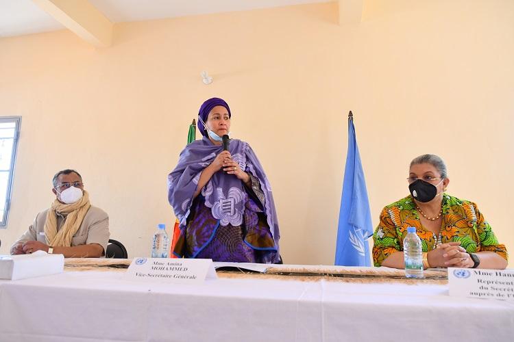 Leading a joint high-level United Nations (UN) team mission to Mali, Deputy Secretary-General MOHAMMED visited the Multifunctional Training Center of the Network of Committed Women in Sévaré, accompanied by the Special Representative of the Secretary-General (SRSG) of the UN in Mali, Mahamat Saleh ANNADIF, of the Deputy SRSG, Humanitarian and Resident Coordinator of the UN's system in Mali, Mbaranga GASARABWE, the SRSG of the UN Office to the African Union, Hannah TETTEH, the Regional Director of the United Nations Development Programme (UNDP) for Africa, Ahunna EZIAKONWA, and the Head of the MINUSMA Regional Office in Mopti, Fatou Thiam.