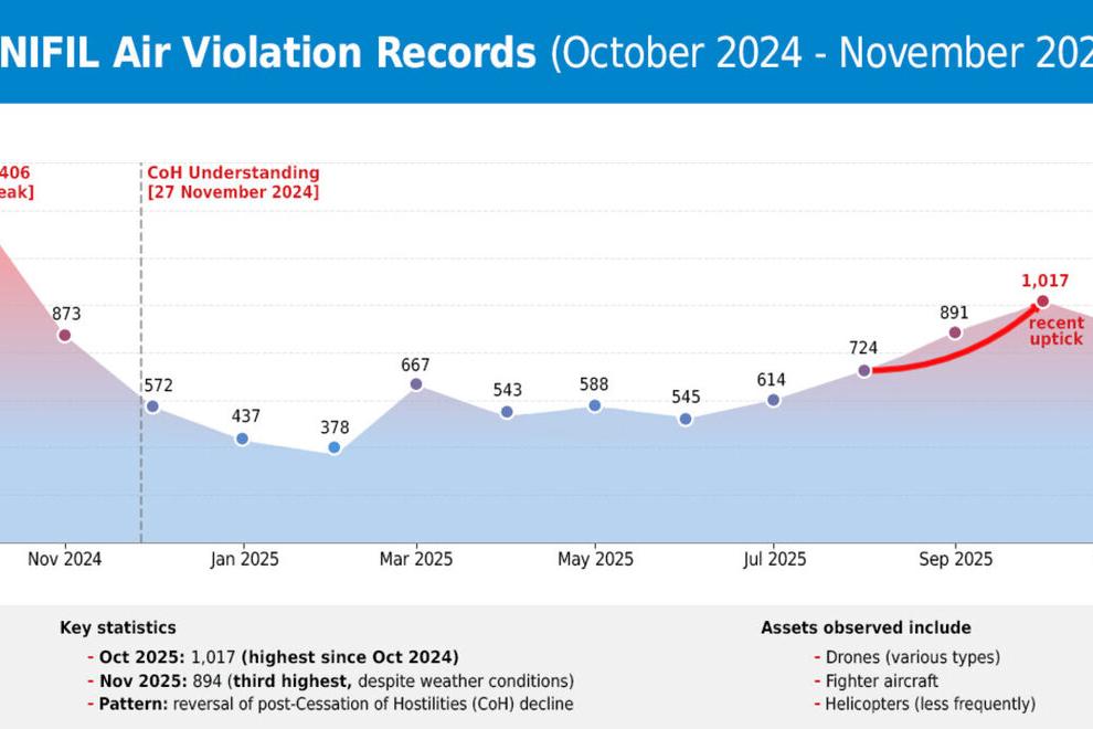 The pattern of Israeli air violations in the 14-month period ending in November shows that although the number of incidents fell following last year’s cessation of hostilities (CoH) understanding, they have risen…