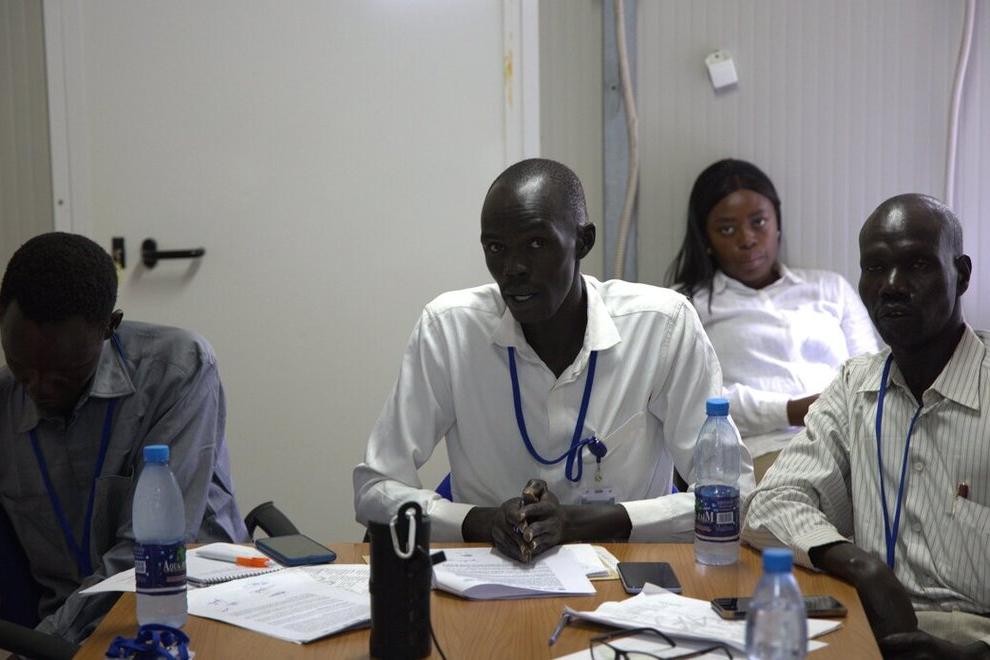 Anguei Angelo Madit, center of the photo, is one of the members of a Youth Peace Committee from Abyei and Twic County that are committed to bringing peace to their communities.