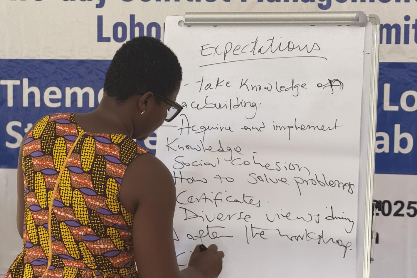 UNMISS and partners trained 80 residents from Lobonok, South Sudan to identify security threats early on, resolve conflict, and build peace during a workshop that also had a special focus on empowering women as leaders. Photo by Elizabeth Mpimbaza/UNMISS.