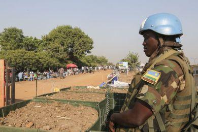 Standing guard to protect residents of UNMISS Tomping internally displaced person camp (IDP), Juba. Photo: UNMISS/Isaac Billy
