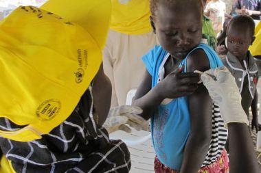 UNICEF began three days of measles and polio vaccinations with vitamin A supplements and deworming for 3,250 children sheltering at the UNMISS base in Bentiu, Unity State, on 6 January. Photo: UNMISS/Anna Adhikari