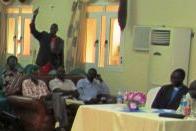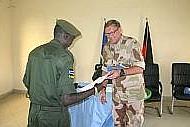 Daad Ismail, President of Deir Qanoun Ras al-Ain Cooperative Association handing over to Antoine Hadid, Director of the Tyre branch of Banque Libano-Francaise baskets of repackaged products.