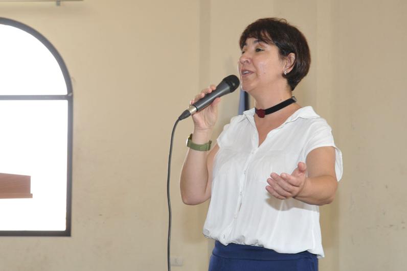 Mrs. Oumeima El Khalil singing in Houla (south Lebanon) cultural center as part of an event marking UN International Youth Day.