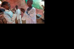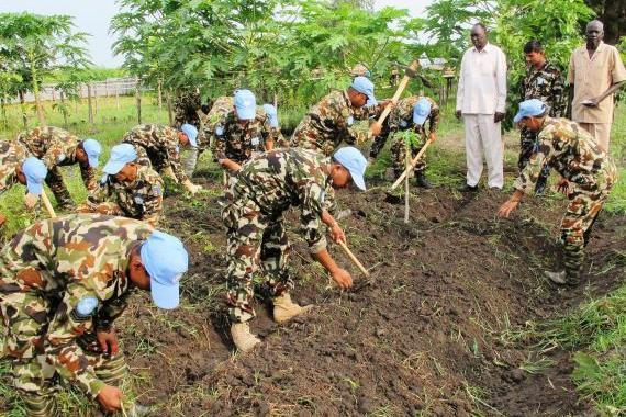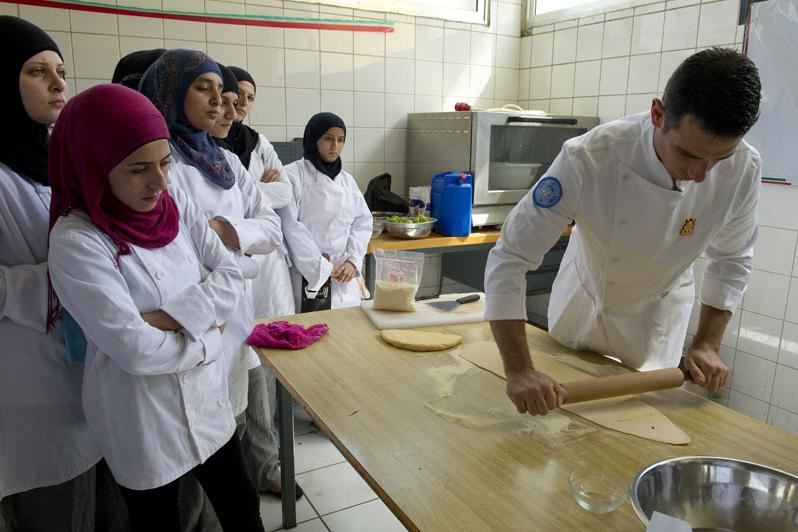 Tyre Public Technical School students keenly follow the demonstration on rolling pasta dough by UNIFIL Italian chef, Roberto Marfella.