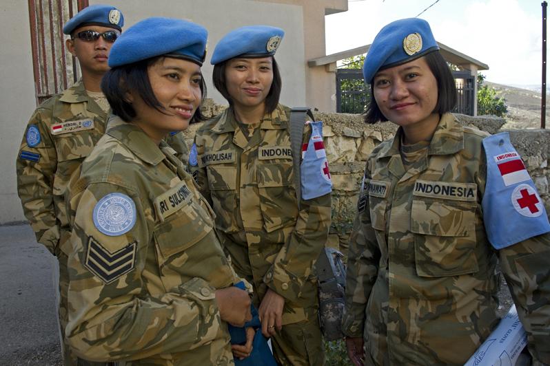 Indonesian battalion nursing team on a house call in Rabb Tlettine village.
