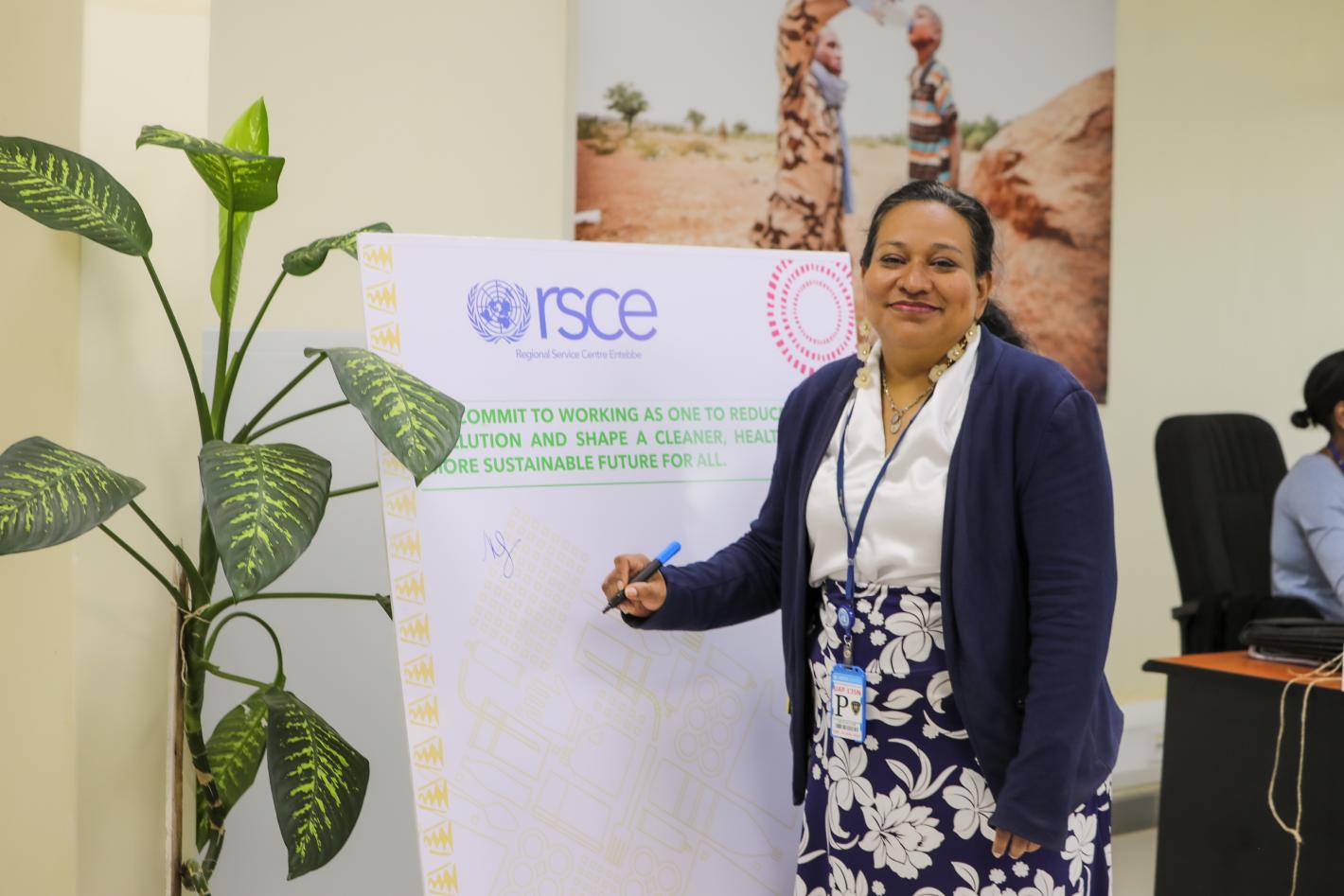 Participants pose for a group photo following the official opening of the regional workshop on promoting women and youth participation in the mining sector in the Great Lakes region. (Photo: Michael Wangusa, UNRCO Uganda).