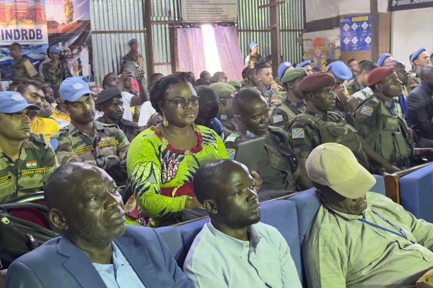 UN troops showing videos explaining the activities undertaken on the ground for the implementation of the civilian protection pillar, community programs and their various partnerships with the FARDC. / Photos by Kevin Jordan