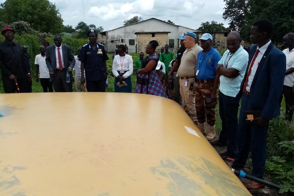 A "bladder" full of water safe to fill your bladder with has been handed over to the prison in Malakal, together with the necessary pipelines. Photos: Samuel Adwok/UNMISS