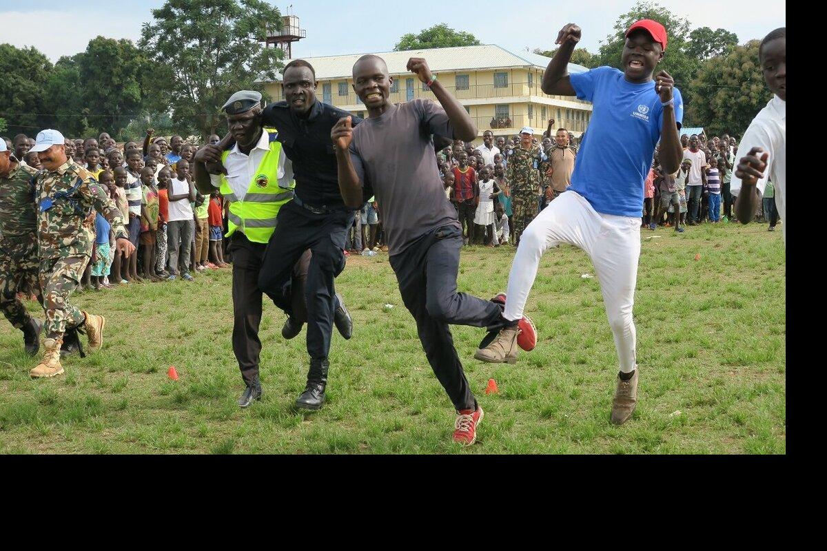 Communities, local authorities and UN personnel in Greater Yei came together in a fun-filled celebration of the 76th anniversary of the United Nations. Photo by Surur Ali Ayile/UNMISS.