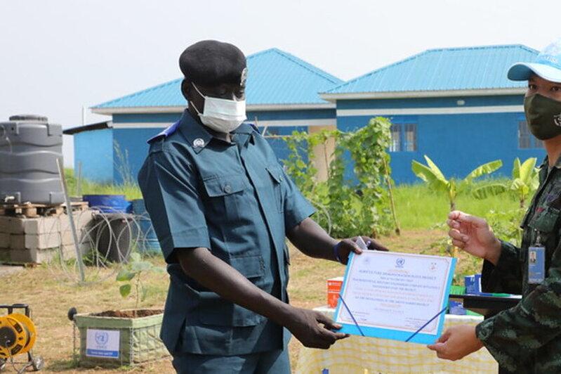 Thai engineers serving with UNMISS have conducted two vocational trainings with members of the displaced community in Juba, South Sudan, to train them in sustainable agricultural practices. The project has been handed over to the South Sudan National Police Service who will ensure that such capacity-building continues to take place. Photo by Nektarios Markogiannis/UNMISS.