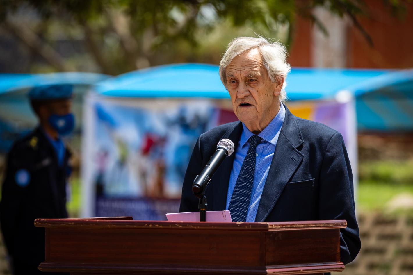 More than 19,000 peacekeepers work hard to deter violence and protect civilians across South Sudan, helping the world's newest country transition from war to peace. Today, the Secretary-General's Special Representative and Head of UNMISS, Nicholas Haysom, honoured them for their service and sacrifice, especially during the time of COVID-19 at a simple but meaningful ceremony at the mission's headquarters in Juba. Photo by Gregorio Cunha/UNMISS.