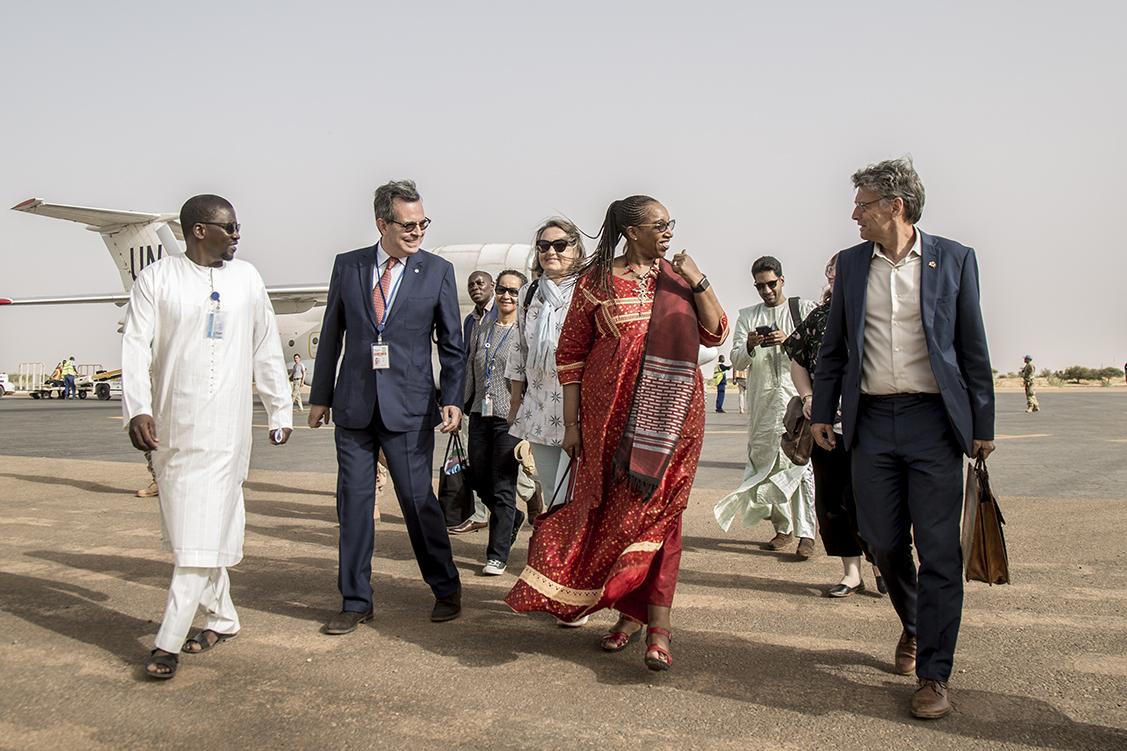 Tombouctou, le 30 avril 2019 -Une délégation composée de l’Ambassadrice du Royaume du Danemark, Mme Marianne Kress, de l’Ambassadeur du Canada, M. Louis Verret, de la Chargée d’Affaires du Royaume de la Norvège, Mme Synne Emilie Bjornra, du Chef de la Coopération du Danemark, M. Anders Bitsch Karlsen, du Directeur Régional des Routes, M. Almahamoud Touré représentant le Ministère des Infrastructures et de l’équipement du Mali et de la Représentante Spéciale Adjointe du Secrétaire Générale de l’ONU pour la MINUSMA et Coordinatrice Résidente du Système des Nations Unies au Mali, Mme Mbaranga Gasarabwe, se sont rendus à Tombouctou ce lundi 29 avril pour visiter plusieurs projets financés par les Nations Unies à travers le Fonds Fiduciaire pour la Paix et la Sécurité au Mali.