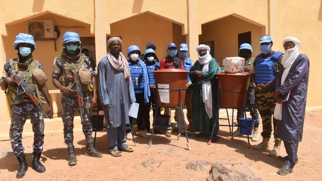 Les 1er, 2 et 3 juillet derniers, les autorités pénitentiaires des régions de Gao, Mopti et Tombouctou ainsi que le gouverneur de Kidal, à titre humanitaire au profit des détenus à Kidal, ont réceptionné des lots d’équipements de lutte contre la COVID-19. Au total, 530 détenus environ en bénéficieront, ainsi que les membres du personnel de leurs établissements respectifs. Cet appui de la MINUSMA est une collaboration entre sa Section des affaires judiciaires et pénitentiaires (SAJP) et le Programme des Nations Unies pour le développement (PNUD), dans le cadre du projet Global Focal Point « Prisons Mandela ».