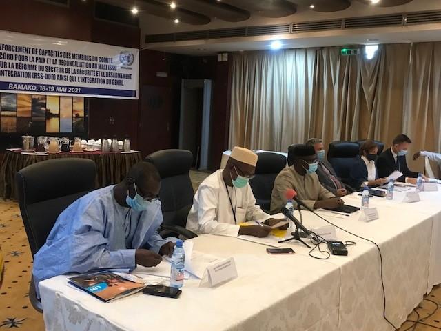 Du 18 au 19 mai derniers à Bamako, s’est tenu un important atelier de renforcement des capacités sur la réforme du secteur de la sécurité et le désarmement, démobilisation et réintégration (RSS-DDR), ainsi que l’Intégration du Genre dans ces domaines au Mali. Destiné aux femmes et hommes membres du Comité de Suivi de l’Accord pour la paix et la réconciliation au Mali (CSA) et de ses sous-comités, ainsi qu’aux représentantes des organisations de la société civile, il a mobilisé une cinquantaine de participant(e)s. Organisé par la section RSS-DDR, l’Unité genre et l'Unité Médiation de la MINUSMA, il répond à l’obligation mandataire faite à la Mission des Nations Unies d’inclure la dimension genre dans l’ensemble de ses actions.