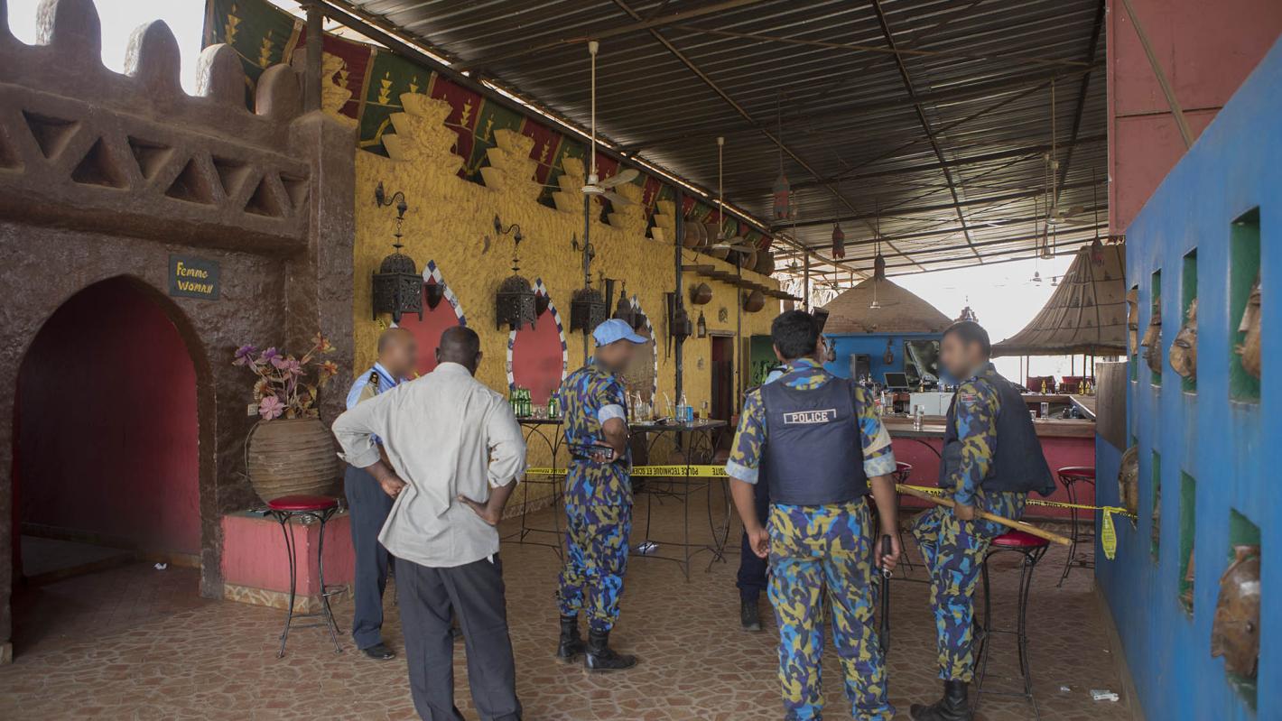 Cette attaque a été menée par au moins une personne masquée qui a ouvert le feu sur les clients. Les rapports préliminaires indiquent que l'attaque a fait au moins 5 morts (3 maliens et 2 étrangers), et 9 blessés, parmi lesquels 2 experts internationaux travaillant avec le Service des Nations Unies de lutte contre les mines (UNMAS) de la MINUSMA.