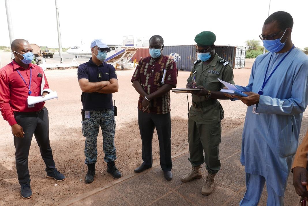 Le matériel remis est entre autres composé d’un pulvérisateur de désinfection, de paires de bottes, de bassines, de seaux, de corbeilles, de paires de lunettes à vue intégrale, de gants de ménages, de combinaisons individuelles jetables et de thermomètres électroniques. « Ce lot de matériels va compléter le dispositif déjà mis en place, grâce au concours des Affaires judiciaires et pénitentiaires de la MINUSMA. Son accompagnement inestimable a été bénéfique pour nous, car aucun cas de Covid-19 n’a été déclaré dans nos Maisons d’Arrêt. Cette maladie est une pandémie d’envergure mondiale, nul ne peut l’éradiquer seul, » a déclaré Houssaini Diallo, Contrôleur des services pénitentiaires de Tombouctou, lors de la cérémonie de réception. Symbolique, celle-ci s’est déroulée à l’aéroport en présence des représentants du Gouverneur, de la Direction Régionale de la Santé et du personnel civil de la MINUSMA.