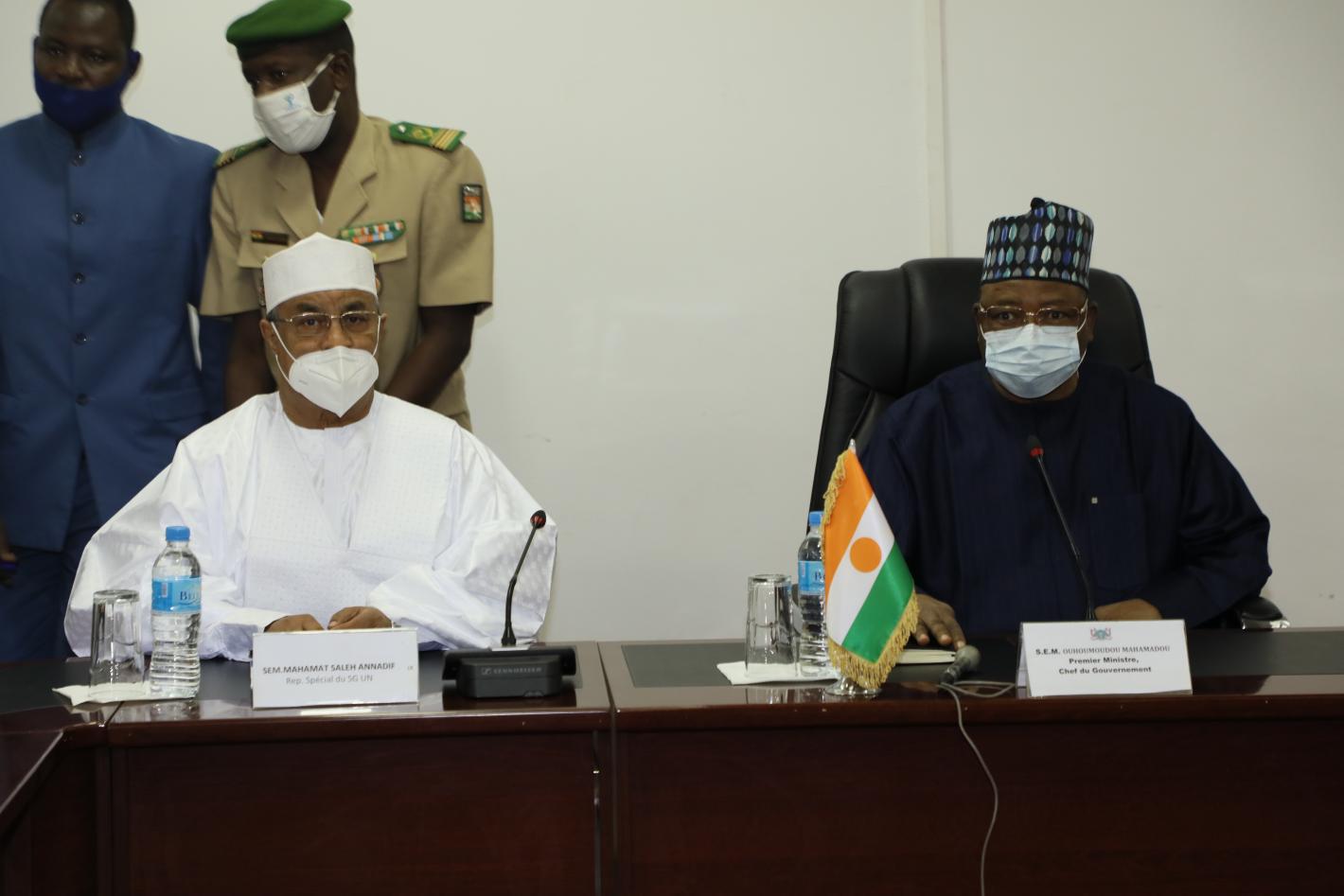 Niamey, 12 novembre 2021 - Le Représentant Spécial du Secrétaire Général et Chef du Bureau des Nations Unies pour l’Afrique de l’Ouest et le Sahel (UNOWAS), Mahamat Saleh ANNADIF et le Premier Ministre de la République du…