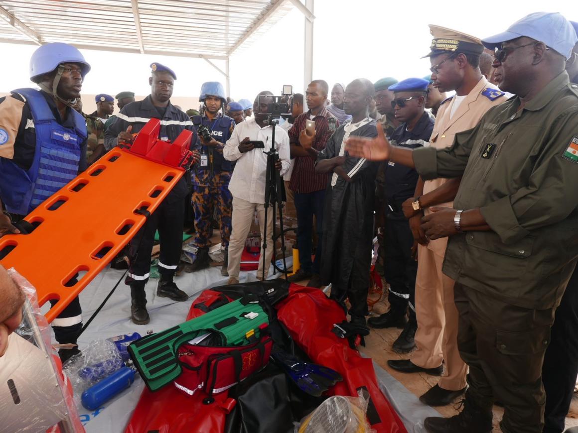 Tombouctou, Tonka, Goundam et Niafounké sont les différentes étapes de cette tournée du Chef d’UNPOL, le Commissaire général de Police, Issoufou Yacouba, dans la Région de Tombouctou. Accompagné du Directeur Général de la Protection civile malienne et du Chef du Pilier Développement de la composante police, le Commissaire Yacouba a commencé par la cérémonie d’inauguration du Centre de secours nautique de Niafounké, sous la présidence du Préfet de ladite localité.