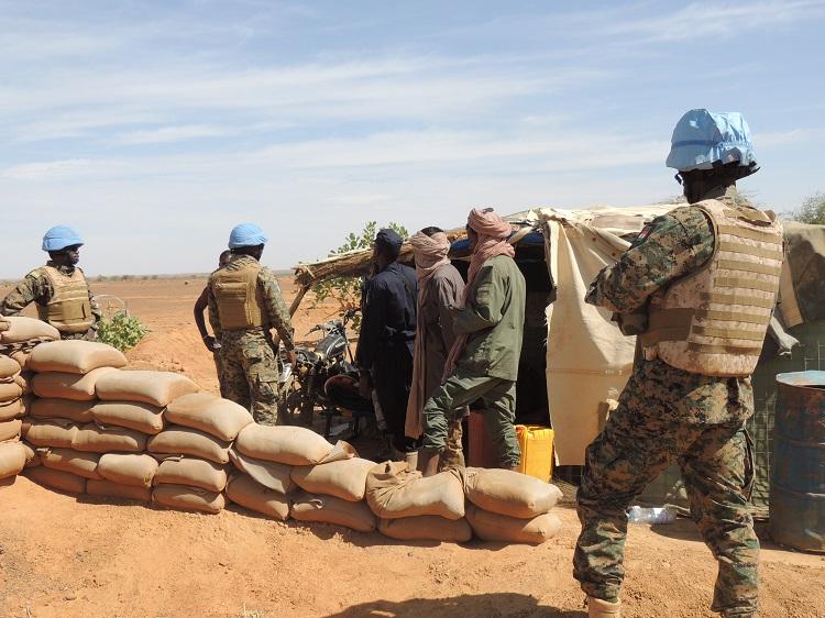 Après quelques minutes de route, la patrouille arrive au point de contrôle des Forces Armées Maliennes (FAMa). Elle s’y déploie en position de défense avant de laisser le lieutenant Mahamane Hadi descendre de son blindé pour se diriger vers ses frères d’armes maliens. Le convoi s’arrête ensuite à un second point de contrôle, tenu cette fois par les éléments de la Plateforme. Ces derniers apprécient les actions de la MINUSMA dans la région : « Nous sommes satisfaits de la collaboration avec la MINUSMA car elle fait beaucoup de choses pour nos communautés. Si certains quartiers ont de l’eau aujourd’hui dans la ville de Ménaka et environs, c’est grâce à la MINUSMA », a confié le chef du poste GATIA/MSA.
