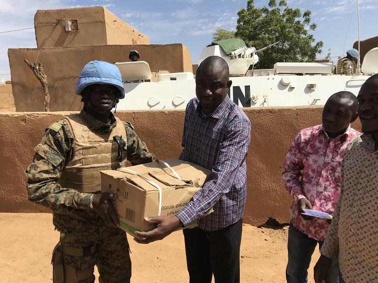 La patrouille est arrivée au CSREF de Ménaka avec plusieurs produits pharmaceutiques à distribuer, dont des anti-hypertenseurs, anti-diabétiques, consommables chirurgicaux, antibiotiques. Le lieutenant Marcellin avait pris le soin de concerter le médecin-chef du centre pour évaluer ses besoins. « Ce geste du contingent nigérien de la MINUSMA nous est parvenu très rapidement pour donner suite à une évaluation. Il nous va droit au cœur car il va nous enlever une grosse épine du pied en venant soulager la souffrance des populations. Ce sont des médicaments très sollicités qui vont être d’un apport capital pour la prise en charge des patients, surtout les cas d’urgence que nous allons recevoir ici. Nous promettons d’en faire bon usage et nous remercions le 6e contingent Nigérien de la MINUSMA pour ce grand geste », a dit le Dr Nouhoum Coulibaly, médecin-chef du centre de santé.
