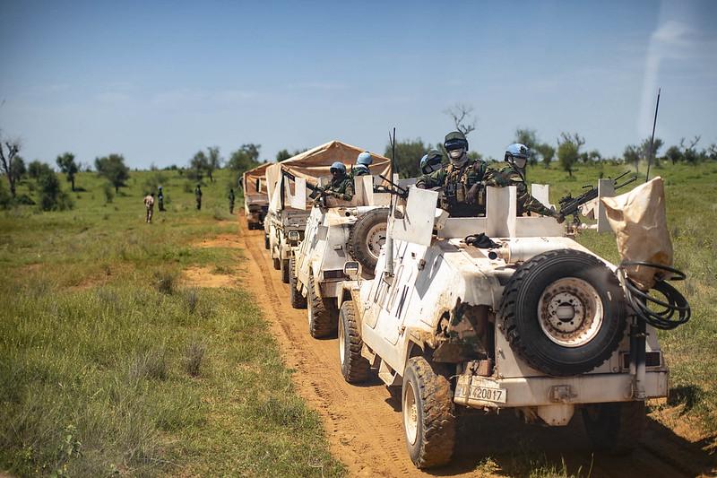 11h00. La longue colonne de véhicules blancs frappés du logo « UN » se lance sur la route nationale 15 (RN 15). Parmi les blindés se trouve celui du Colonel TAMIBE des Forces armées tchadiennes et Chef d’Etat major de la Force de la MINUSMA dans cette région. Avec son adjoint le Commandant DOUKA du Niger, ils ont pour mission d’accompagner leurs frères d’armes sur leur lieu de déploiement.