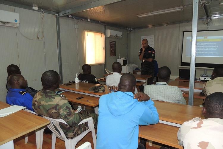 Du 4 au 8 mars 2019, la Police des Nations Unies (UNPOL) à Gao a organisé une formation auprès des Forces de Défense et de Sécurité Maliennes (FDSM) sur les mines et les engins explosifs improvisés au camp de la MINUSMA.