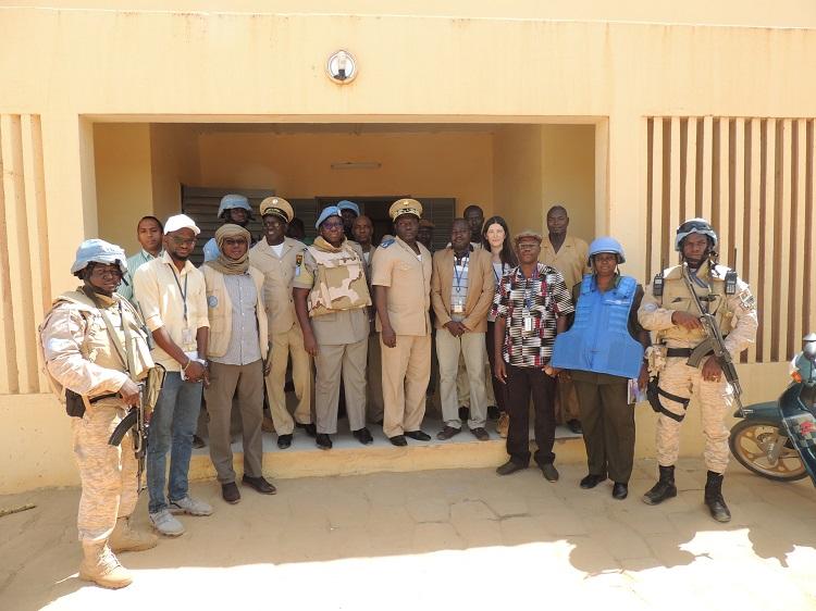 Pour accompagner le juge de paix à compétence étendue, la délégation était composée de représentants des sections de la MINUSMA parmi lesquelles les Affaires judiciaires et pénitentiaires, les Affaires civiles, l’Information publique et la Communication stratégique, la police des Nations Unies avec à sa tête la coordinatrice régionale, ainsi que le représentant du Directeur régional de l’Administration pénitentiaire et de l’Education surveillée.