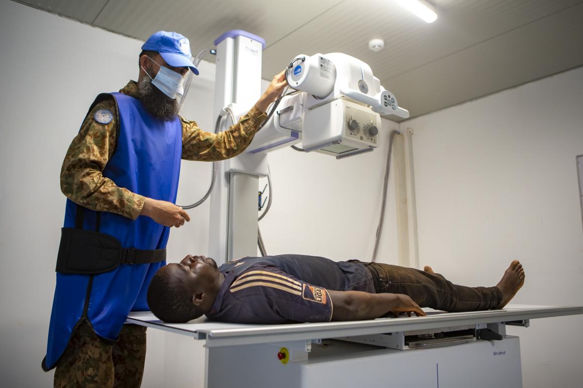 Dans les régions où elle est déployée, la MINUSMA a mis en place des hôpitaux militaires pour fournir une assistance médicale vitale aux Casques bleus blessés. L'hôpital de Mopti, géré par les médecins militaires du contingent pakistanais de la MINUSMA en est un exemple. Doté de 75 agents médicaux, dont 10 femmes et 65 hommes, l'hôpital fonctionne 24 heures sur 24, tous les jours, et les équipes sont toujours en alerte. Avec un équipement de pointe, toutes les spécialités sont couvertes, de la pharmacie à la gynécologie. Son objectif principal est d'effectuer des interventions chirurgicales vitales et urgentes lorsque des Casques bleus sont blessés. En effet, de 2018 à ce jour, dans la seule région du Centre où se situe Mopti, 19 d'entre eux ont été victimes d'explosions d'engins explosifs improvisés ou de mines.