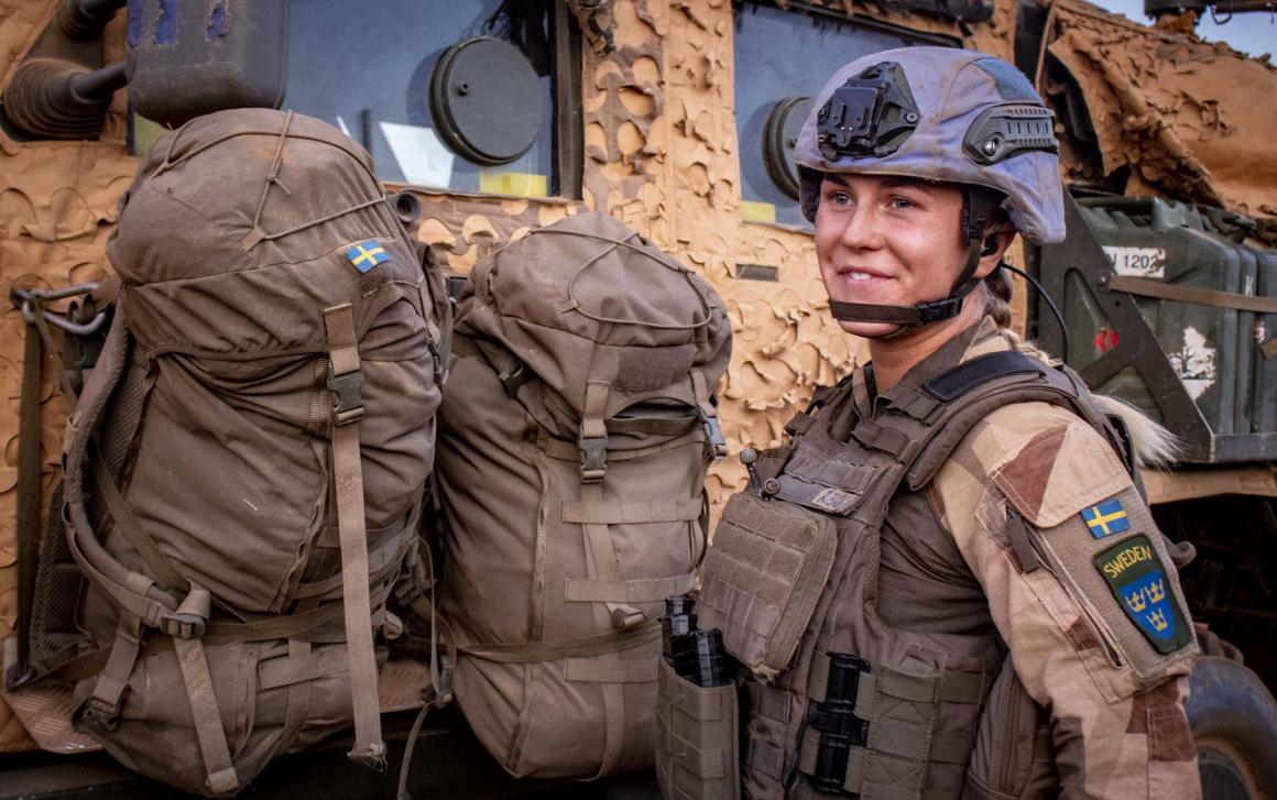 Parmi les militaires de l’escorte, Ebba est un exemple de cette motivation. Agée de 22 ans et native de la région de Stockholm (capitale de la Suède), ce soldat de deuxième classe est l’une des 26 femmes présentes au sein de la compagnie. Déployée au Mali depuis cinq mois, elle est motivée pour accomplir sa mission : « protéger les populations ». Conductrice de blindés et tireuse d’élite à la tourelle, Ebba se sent aussi bien à l’intérieur qu’au-dessus d’un blindé. Ce jour, elle raconte son expérience sur les terres rocailleuses à l’entrée de Tin Tafagat, un village aux environs de Hin Hamma. « Dans l’armée suédoise, il n’y a pas de différence fondamentale entre une femme et un homme », dit-elle pour expliquer ses capacités d’adaptation aux conditions climatiques.