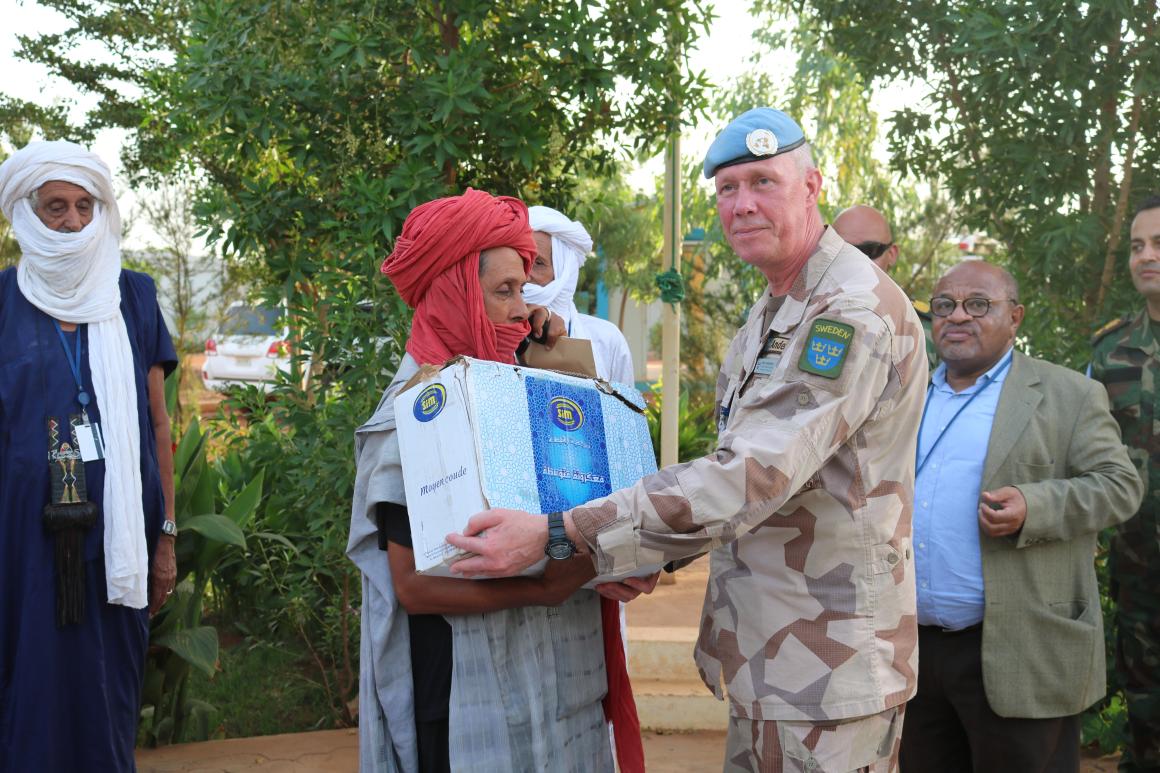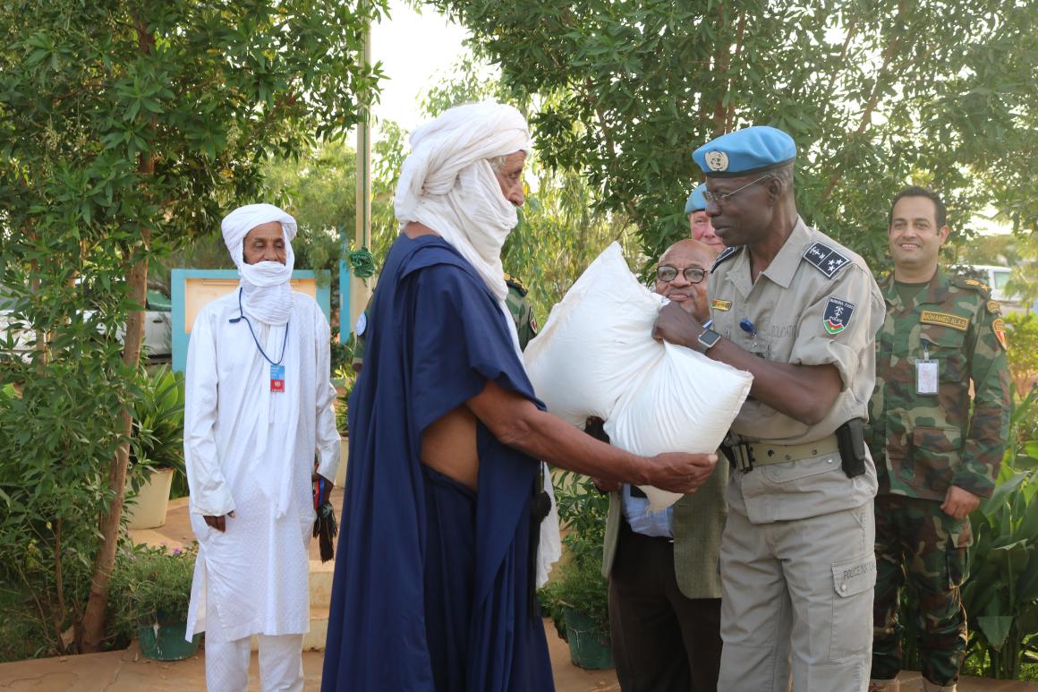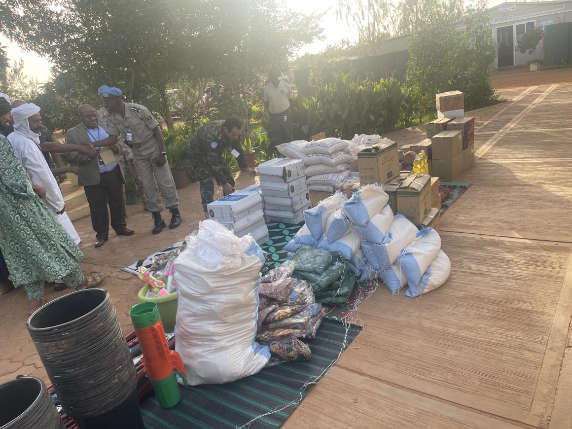 Les militaires et policiers des Nations unies déployés dans la région de Gao se sont spontanément mobilisés pour aider les personnes déplacées de la localité de Talataye, à 270 Km de Gao. Une quête a permis de réunir un montant symbolique ainsi que des denrées de première nécessité. Ce don qui reflète l’empathie du personnel de la MINUSMA envers les déplacés a été remis les 27 et 29 septembre 2022 aux leaders communautaires et au 1er adjoint au maire de la localité, Farok Ag FAKANA, lors d’une sobre cérémonie au camp de la Mission onusienne à Gao.