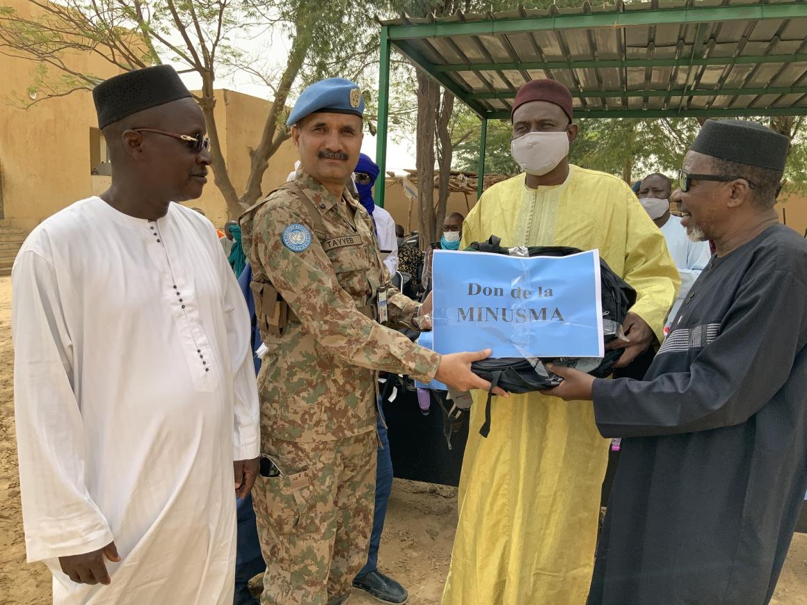 Ce don a été officiellement remis par l’adjoint du Commandant de Force de la MINUSMA de la région de Tombouctou aux responsables régionaux de l’Éducation, en présence notamment des directeurs des écoles concernées.