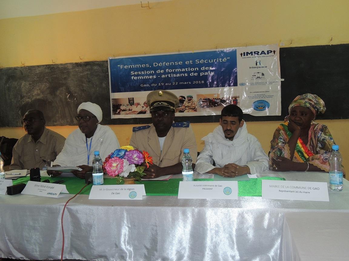 Durant quatre jours, les femmes et les forces de défenses et de sécurité du Mali (FDSM), se sont appropriées les notions portant sur l’amélioration du statut du personnel féminin au sein des FDSM et la réforme de la sécurité (RSS). Ils ont aussi travaillé sur le renforcement de la confiance entre les femmes civiles et entre ces femmes et leurs sœurs au sein des FDSM. « Il apparait indispensable de développer des actions en faveur de la gestion pacifique des conflits, en plaçant les femmes au cœur du processus car, elles ont un rôle informel important mais encore peu visible et valorisé pour favoriser la restauration et la consolidation de la paix et la relance des actions de développement dans cette région du Mali particulièrement déshéritée, » a déclaré Mme Seima Issa Maiga, adjointe au Maire de la Commune urbaine de Gao.