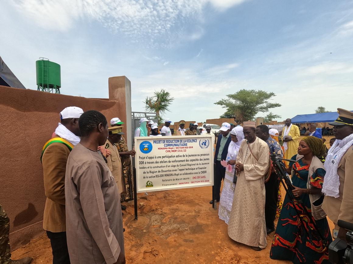 Le Conseil régional de la Jeunesse de la ville de Douentza, Centre du Mali, a son nouveau siège depuis le 16 août 2022. Financé par la MINUSMA, les travaux de construction de cet édifice ont permis la création de 35 emplois temporaires dont 25 qualifiés pour les jeunes à risque de radicalisation pendant six mois. Ce financement qui s’insère dans un programme de réduction de la violence communautaire (CVR) comportait un volet pour le renforcement des capacités des jeunes leaders sur le processus de Désarmement, Démobilisation et Réinsertion/Réintégration (DDR). Cela devrait contribuer à l’instauration d’un climat propice à la poursuite du processus de cantonnement et de DDR dans les régions du centre.