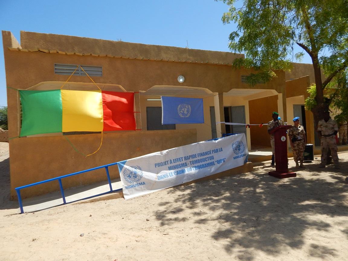 Le Commandant du Secteur Ouest de la Force de la MINUSMA, le Général de brigade Stefan Anderson a procédé, le 11 avril dernier, à la remise officielle du projet d’Amélioration des conditions scolaires du Jardin d’Enfants du Camp "Fort Cheick Sidi Bekaye". Un projet à impact rapide, financé par la MINUSMA pour 24 millions de Francs CFA et qui profitera à 115 enfants, dont 60 filles, élèves des trois sections de maternelle. L’objectif étant de sécuriser les enfants et d’améliorer le taux de fréquentation de l’école.