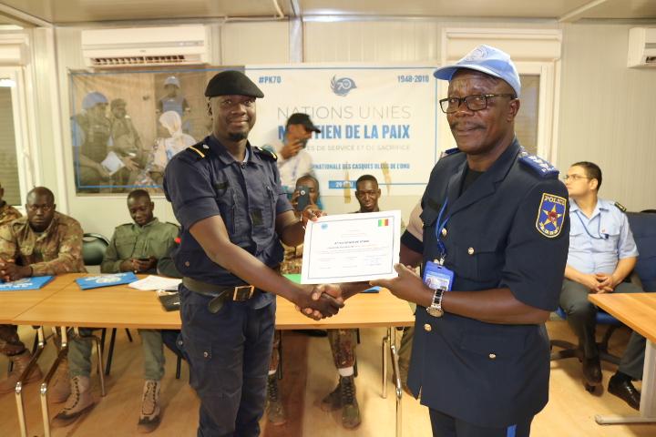 « La crédibilité des élections dépend étroitement de la manière dont elles sont sécurisées, » a rappelé le Colonel Jean-Pierre Nyandu, Commandant régional de la Police des Nations Unies dans la région de Mopti peu avant la remise des certificats de participation aux stagiaires en présence des représentants de la Police nationale, de la Gendarmerie, de la Garde Nationale, et de la Protection Civile. Il a aussi ajouté que « sécuriser les élections est un pas essentiel dans la vie démocratique d’un pays ».