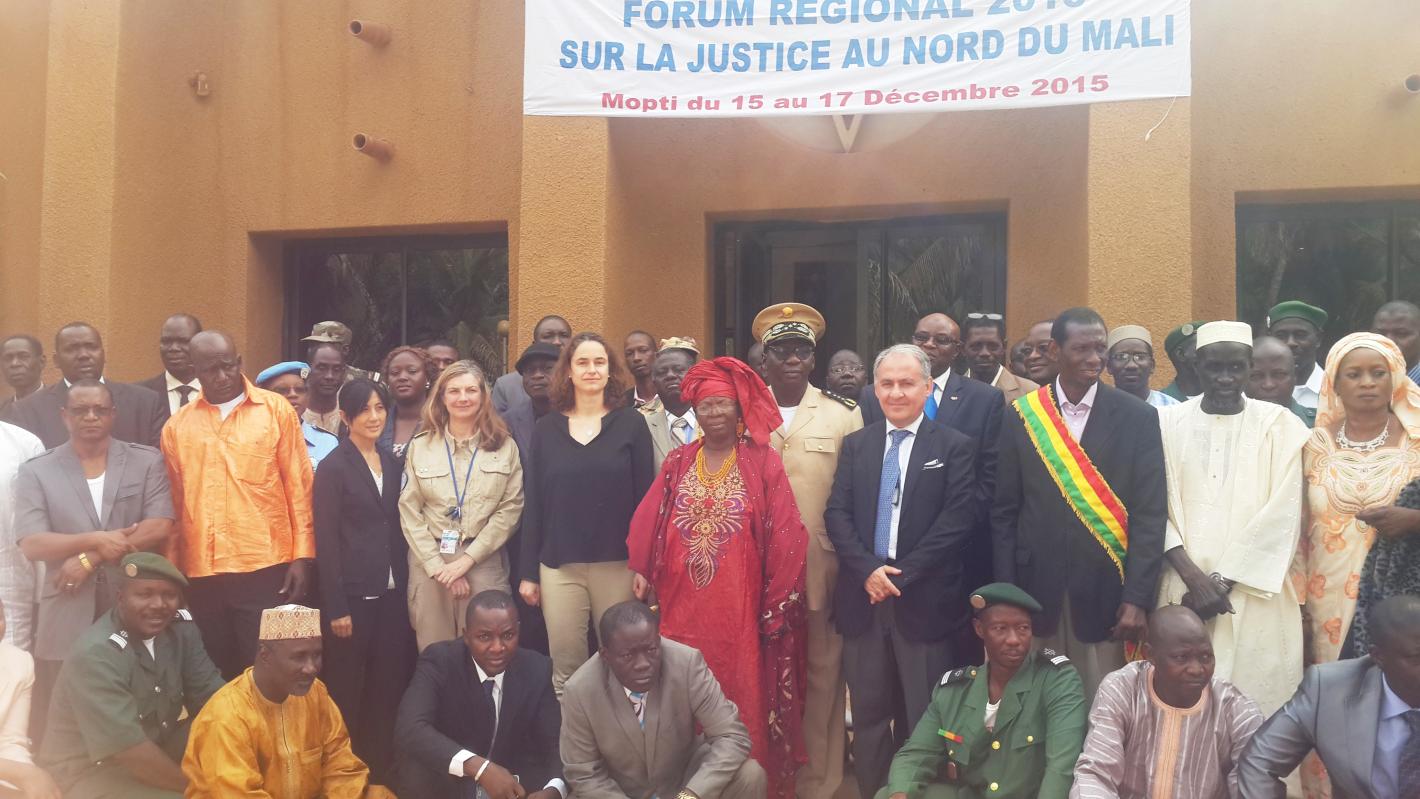 Du mardi 15 au jeudi 17 décembre 2015, la Section des Affaires judiciaires et Pénitentiaires de la MINUSMA à Mopti, en collaboration avec la Cour d’Appel de Mopti a tenu, à l’Hôtel Kanaga, le forum régional 2015 sur la justice au nord du Mali. Le forum a réuni plusieurs participants issus de la famille judiciaire, du ressort de la Cour d’Appel et, des représentants de la société civile.