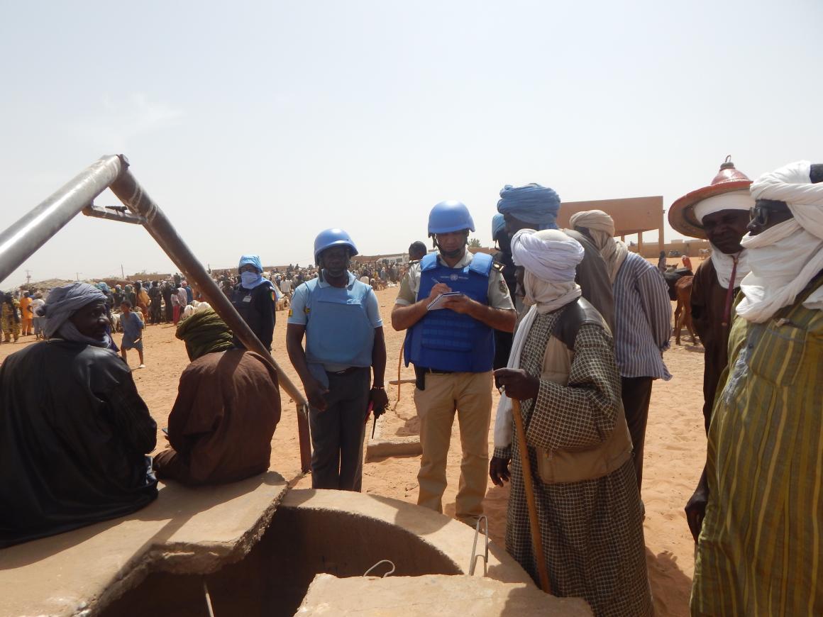 Le fleuve Niger est situé non loin du lieu où se tient le marché, mais l’eau potable y est rare. « L’eau du fleuve que nous buvons n’est pas de l’eau pure. Le trou de forage profond se trouvant au milieu de notre marché est privé de sa poulie motrice. La dalle en ciment couvrant le trou de forage est endommagée et par conséquent, l’eau s’y trouvant est souillée et n’est plus accessible » a déclaré M. Saliou Alhousseni aux agents de la Police de la MINUSMA.