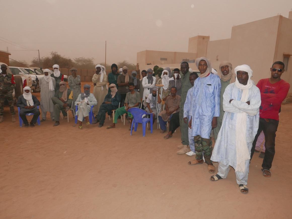Au cours de la cérémonie, la MINUSMA était représentée par son personnel, parmi lesquels le Responsable administratif régional, le Commandant du Secteur Est, le Président du comité Welfare et la Responsable de la section DDR à Gao.