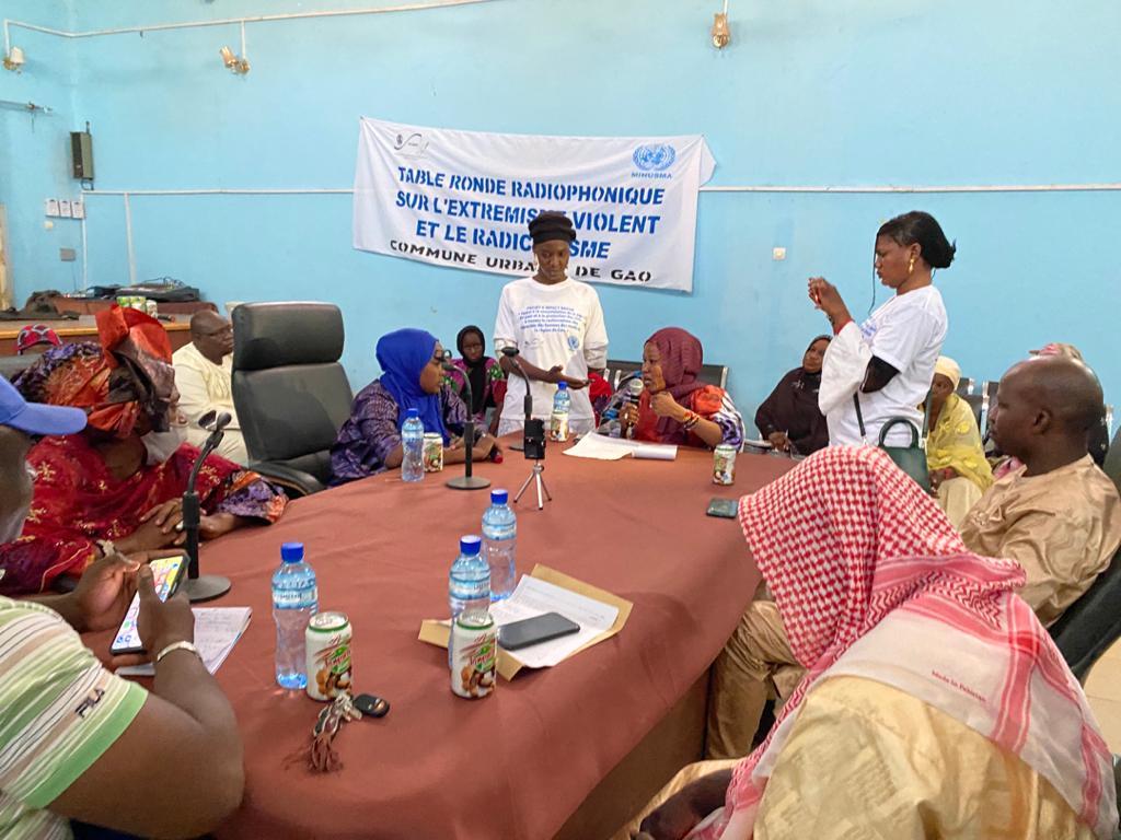 Le 1er juillet dernier a eu lieu, dans la salle de l’Assemblée régionale de Gao, une table ronde sur le thème de l’extrémisme violent et le radicalisme. Une activité qui fait partie d’un projet à impact rapide (QIP) de la MINUSMA, au profit de 45 femmes issues de 24 radios de proximité de la région de Gao. Lancé le 15 juin dernier et porté par le Réseau des Femmes des Ateliers du Nord pour la paix, ce projet avait permis d’aborder d’autres thèmes comme : l’appropriation du processus de paix, le statut des leaders religieux, communautaires et des femmes, les risques liés à la consommation des drogues, les risques liés à l’orpaillage.