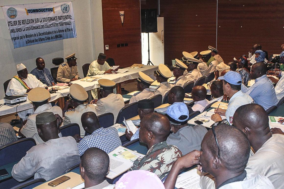 Le Ministère de la Décentralisation et de la Réforme de l’Etat, en partenariat avec la Division des Affaires Civiles de la MINUSMA a organisé à Tombouctou, les 28 et 29 Juin, un atelier sur le thème de la "Gouvernance participative et principes sous-jacents", ou comment faire en sorte d’associer les populations à la gestion de leurs localités. Cette activité a pour but de permettre le renforcement de la gouvernance locale à travers une plus large appropriation communautaire des décisions, sur la gestion de la chose publique.