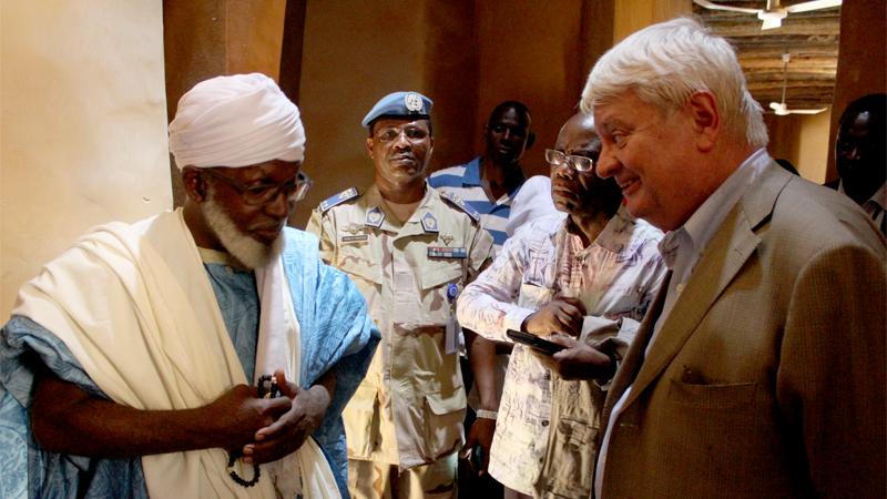 Dimanche 17 mai, le Secrétaire général adjoint des Nations Unies aux opérations de maintien de la paix a pris le départ pour Tombouctou, accompagné du Représentant spécial Adjoint M. Akodjenou. M.Ladsous souhaitait évaluer la situation et les défis sécuritaires dans la région. Le Grand Imam Abderrahmane Ben Essayoutti a insisté sur la sérieuse dégradation sécuritaire qui devenait intolérable depuis la fin du mois d’avril. Les interlocuteurs rencontrés appellent la MINUSMA à réagir fermement contre ceux qui violent les accords du cessez-le-feu. Dans les échanges, l'Imam lui a confié les inquiétudes de la population par rapport aux récents incidents « Tombouctou est une région pacifique, où les gens respectent la tradition de vivre ensemble, mais la situation n'est pas tolérable à outrance» a-il souligné.