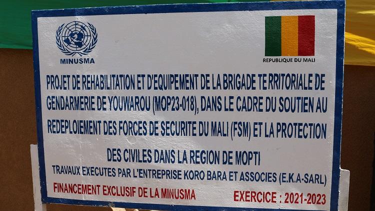 La réhabilitation de la Brigade Territoriale de Gendarmerie de Youwarou est le sixième projet du genre en faveur de la Gendarmerie nationale. Elle s'ajoute à la construction et à l'équipement de la Brigade Territoriale de Gendarmerie de Somadougou, à la réalisation de six latrines pour la Compagnie du Groupe d’action rapide et d’intervention (GARSI), à la construction de deux forages pour les brigades territoriales de Koro et de Bankass, à la réhabilitation du bâtiment principal de la brigade territoriale de Gendarmerie de Hombori, ainsi qu'à la réhabilitation et à l'équipement des brigades territoriales de Boni et de Konna.