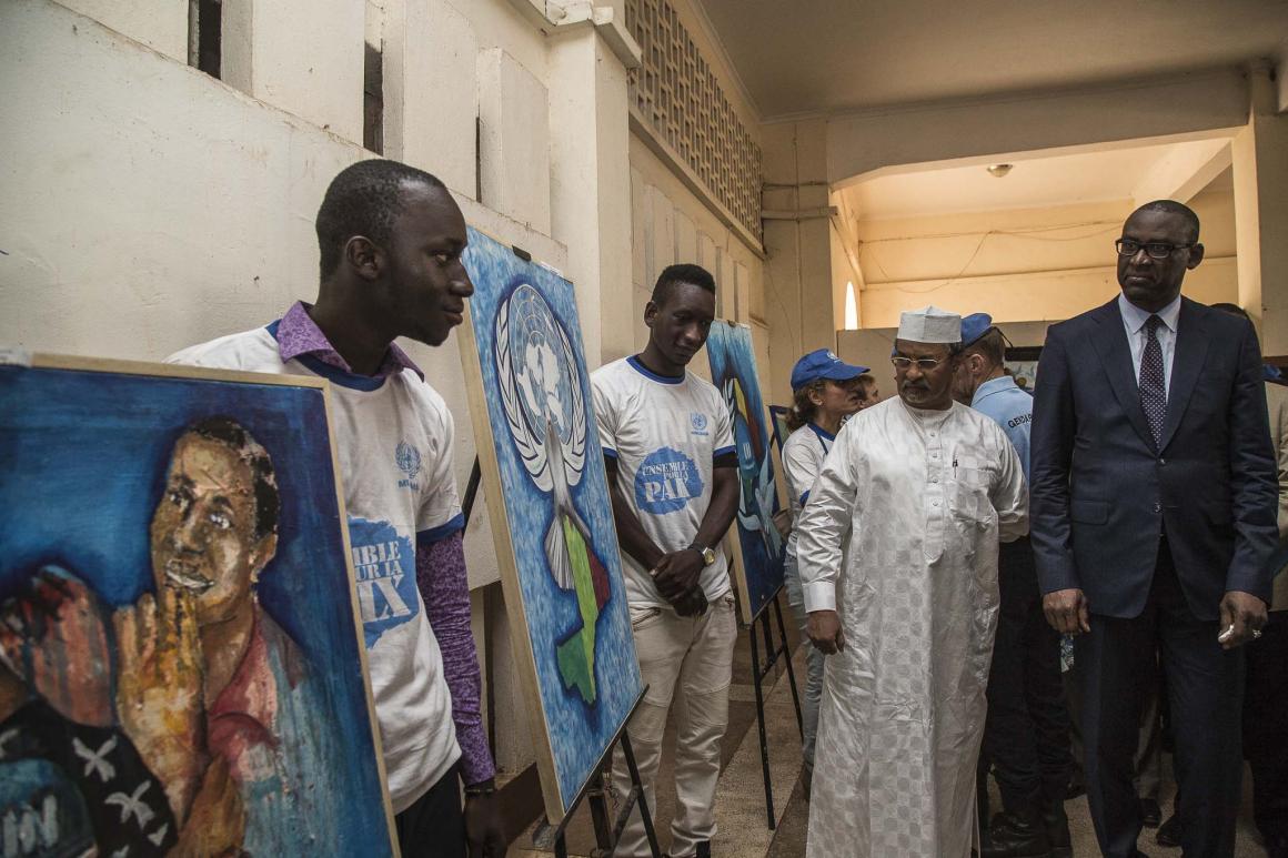 La cérémonie s’est poursuivie avec la visite par les autorités d’une exposition d’œuvres d’art produites par les étudiants du Conservatoire des arts et métiers multimédias ‘’Balla Fassaké Kouyaté’’. Il s’agit pour eux de véhiculer des messages de paix à travers une série de tableaux peignant les Casques bleus et leur travail tels que perçus par ces jeunes dont les cinq meilleurs ont été primés. Les lauréats du concours se sont vus décerner des trophées pour les encourager à continuer dans cette dynamique positive.
