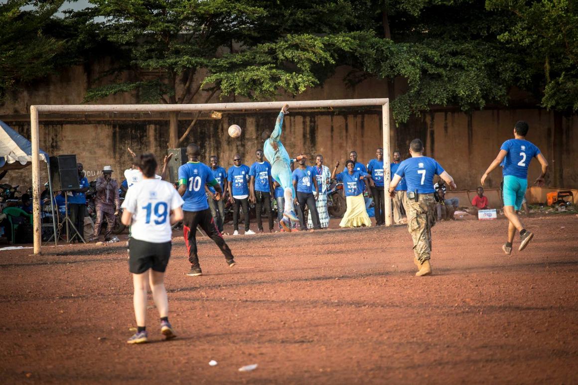 Le coup d’envoi a été donné au stade municipal de Torokorobougou à Bamako par l’Institut Mondial pour l’Autonomisation des Femmes (IMAF), avec l’appui de la Division de la Communication et de l’Information publique de la MINUSMA. Plus d’une centaine de participants, pour la plupart des jeunes, ont ainsi célébré la Journée Internationale de la paix, en présence du représentant du maire de la Commune V de la capitale malienne, des autorités coutumières, des membres des organisations locales et du personnel civil et Casques bleus de la Mission onusienne.