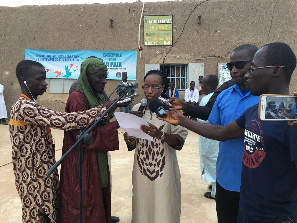 Le Mali a célébré pour la cinquième fois la Journée Internationale de la Paix, le 21 septembre 2017. Aux côtés des autorités locales et de la MINUSMA, à Bamako, Tombouctou et Gao, un millier de jeunes se sont mis « Ensemble pour la Paix - respect, sécurité et dignité pour tous », aux travers de manifestions socio-culturelles et sportives.