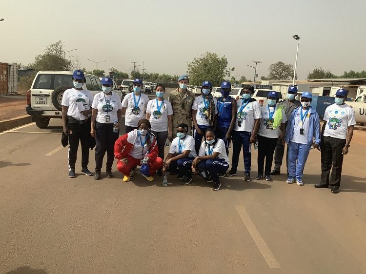 La Force de la MINUSMA et la Police des Nations Unis (UNPOL) ont organisé une marche sportive le 05 mars au quartier général de la MINUSMA à Bamako. Elle a été présidée par le Commandant de la Force, le Général Dennis GYLLENSPORRE qui avait à ses côtés la Cheffe d’UNPOL, la Générale de Division Bettina Patricia BOUGHANI et son adjointe la Générale de police Mamouna OUEDRAOGO, ainsi que le Chef des opérations, le Général Charfadine Margui MAHAMAT. Le Général GYLLENSPORRE a profité de l’occasion pour exprimer toute sa gratitude à l’endroit de toutes les femmes Casques bleus de la MINUSMA pour leur engagement au quotidien au service de la paix au Mali. Dans une ambiance chaleureuse, les femmes Casques bleus de la MINUSMA ont fait le tour du quartier général. Une remise symbolique de médailles aux dix premières arrivées, a mis un terme à la cérémonie.