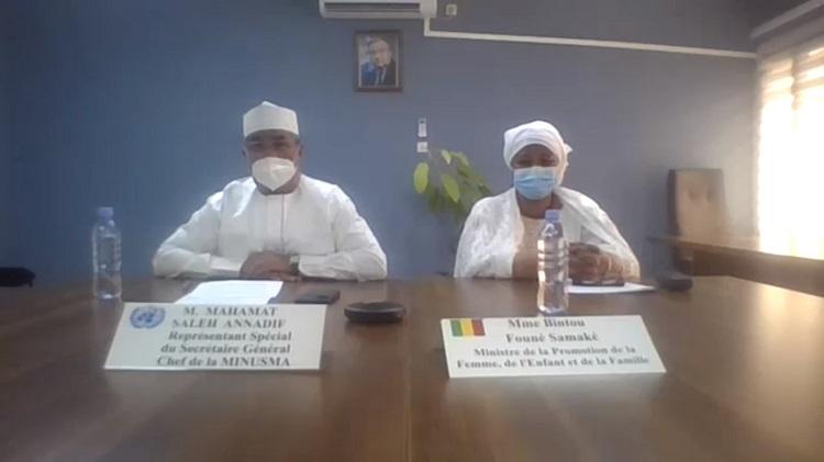 Attentif aux différentes présentations, le Chef de la MINUSMA, le Représentant spécial du Secrétaire général de la MINUSMA, Mahamat Saleh ANNADIF a d’abord chaleureusement remercié la Ministre de la Promotion de la Femme de l’Enfant et de la Famille pour son déplacement « dans ce contexte sanitaire si particulier ». Les 25 ans de la Conférence de Beijing sur les droits des femmes, le 20ème anniversaire de la Résolution 1325 (2000) du Conseil de sécurité de l’ONU sur Femmes, Paix et Sécurité, célébrés à Bamako au cours de l’année 2020, sont des évènements qu’il a évoqué avec fierté, félicitant les Maliennes pour leur « implication dans la politique, pour la paix au Mali ».