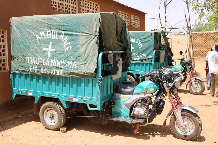Les missions conduites les 21 et 22 mai derniers ont servi de cadre pour la remise officielle de trois projets majeurs financés par la MINUSMA. Les deux premiers projets de réduction de la violence communautaire (RVC) sont portés par la section de la Réforme du Secteur de la Sécurité et de du Désarmement, de la Démobilisation et de la Réinsertion (RSS-DDR) de la MINUSMA à Mopti. Pour le premier, il s’agit d’un complément au projet pilote justice et réconciliation pour la réduction de la violence communautaire et la cohabitation pacifique. Il bénéficie aux villages de Dangatené, Am, Sabéré- Darah et Yorou. À travers ce projet RVC, la MINUSMA a, d’une part, financé la réalisation d’un périmètre maraîcher avec un système d’adduction d’eau au profit des femmes et des jeunes à risques de Dangantené et ceux de Sabére-Darah déplacés à Dangantené. Il a permis, d’une part, de doter les villages de Dangantené, Am et Yorou, de six motos-tricycles équipées et recouvertes qui serviront d’ambulance pour transporter des malades au centre de santé le plus proche.