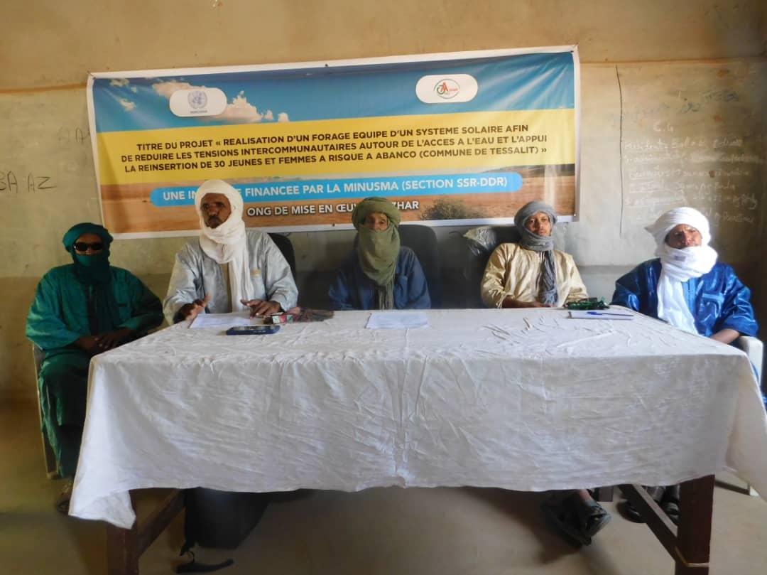 Le premier projet concerne la construction d’un barrage de retenue d’eau à Tadayite, une vallée située à 70 kilomètres au nord-ouest de la ville de Kidal. Dans sa première phase, le second impliquera la réalisation d’un forage équipé d’un système solaire et d’un château d’eau d’un débit de 10 m3 par heure au bénéfice des communautés d’Abanko à 20 km au sud de Tessalit. Le deuxième volet devrait fournir des équipements à 30 jeunes et femmes, afin de leur permettre de développer leurs moyens de production dans les domaines de l’élevage et du maraichage. D’un montant global de plus de 80 millions de francs CFA, ces deux projets sont respectivement, portés par le Groupe Action Recherche pour le Développement Local (GARDL), l’ONG AZHAR (le lien, en tamasheq). Ils visent à prévenir et réduire les conflits inter et intra-communautaires.
